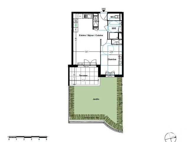 T2 de 45.93 m² environ avec terrasse de 8.76 m² environ jardin privatif de 37.46m2 environ et garage.