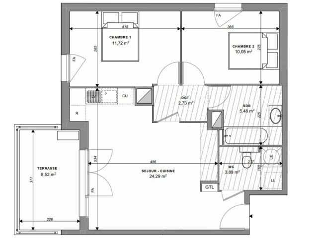 Situé au 1 er étage, cet appartement T3 de 58 m² environ habitables se prolonge par une terrasse de 9 m² environ.