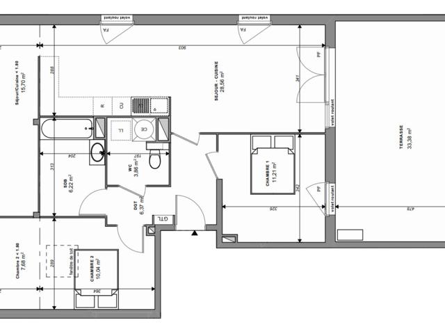 Situé au 2 ème étage, cet appartement T3 de 66 m² environ habitables se prolonge par une terrasse de 33 m² environ.