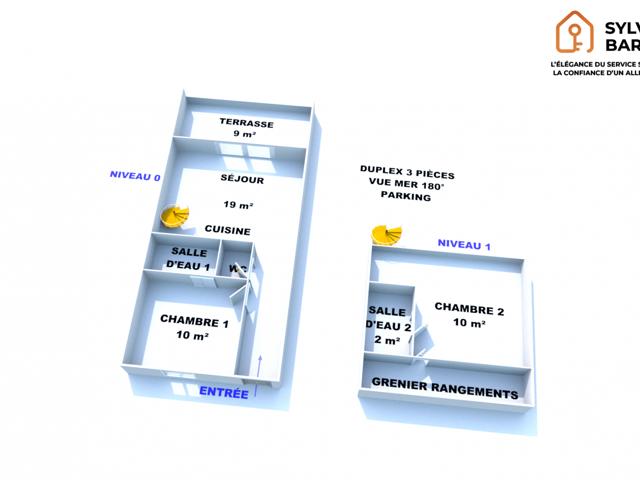 L'appartement, d'une superficie Loi Carrez de 51,07 m2, se compose d'un LUMINEUX séjour avec cuisine AMÉRICAINE aménagée et équipée ouvrant sur une grande TERRASSE de 9 m2 exposée plein SUD avec sa pergola BIOCLIMATIQUE motorisée, d'une chambre de plain-pied avec sa salle d'eau neuve et d'un WC indépendant. À l'étage, une seconde chambre en mezzanine ainsi qu'une deuxième salle d'eau neuve. L'appartement est entièrement RÉNOVÉ à neuf, CLIMATISÉ et dispose de prestations de STANDING avec baies coulissantes ALU double vitrage, volets roulants électriques et fibre optique.