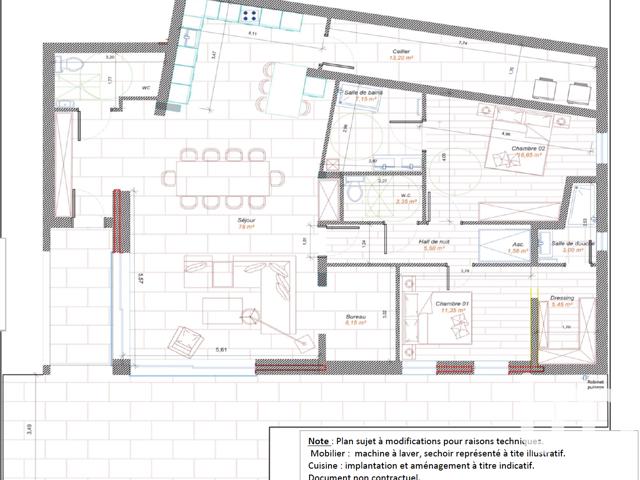 Deux chambres, dont une avec dressing, complètent l’espace nuit, avec salle de bains, salle d’eau, deux WC, un bureau, un cellier, offrant un confort de vie optimal au quotidien.