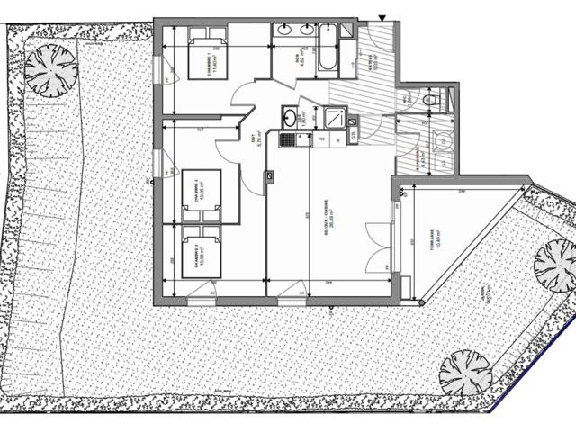 Situé en rez-de-jardin, cet appartement T4 de 82 m² environ habitables se prolonge par un jardin de 145 m² environ.