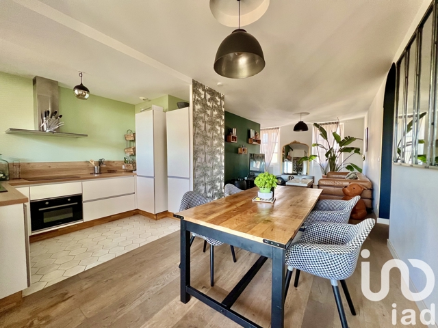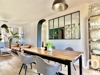 Un salon chaleureux avec cuisine ouverte au style industriel
