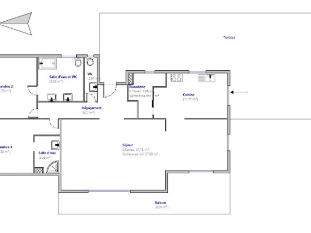 D’une surface de 99 m², il se compose d’un double séjour lumineux, d’une cuisine indépendante, d’une suite parentale avec salle de douche et dressing, d'une chambre supplémentaires avec salle d'eau et d'un toilette séparé. (possibilités aménagent d'une 3eme chambre)