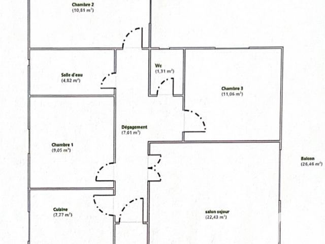 Cet appartement se compose d’un séjour lumineux ouvrant sur un balcon filant, d’une cuisine, de trois chambres dont deux donnant accès à une grande terrasse d’environ 20 m² bénéficiant d'une belle exposition, idéale pour profiter de moments en famille ou entre amis. Vous trouverez également une salle d’eau, un WC indépendant ainsi que de nombreux rangements complètent ce bien.