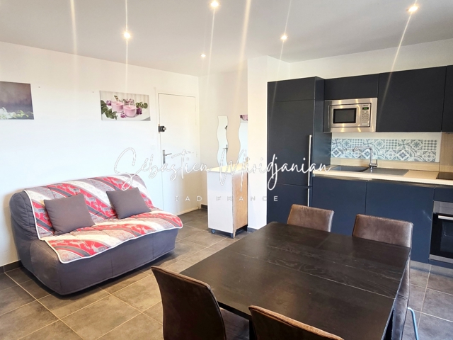 iad France - Sébastien Miridjanian vous propose: Superbe appartement de type 2 avec balcon proche commodités au pied du magnifique village de Bormes-les-Mimosas. Idéalement situé ce bien possède une pièce à vivre climatisée avec une cuisine équipée donnant sur le balcon traversant accessible depuis sa baie vitrée à galandage, un couloir avec rangement, une salle d'eau avec wc, et une chambre avec placard de rangements.