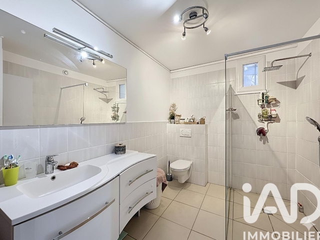 Une grande salle d’eau de avec double vasque, douche à l’italienne , wc , équipée d'une vmc.