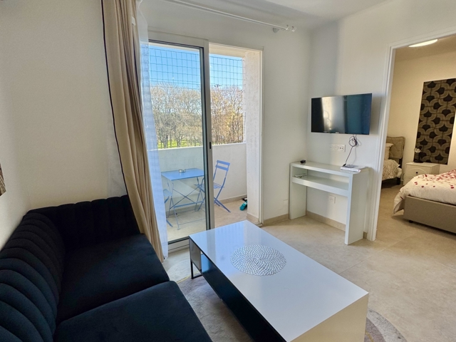 Il se compose d’une pièce de vie lumineuse avec un balcon et une cuisine ouverte.
