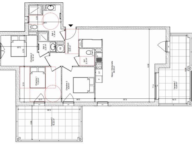 Situé au 1 er étage, cet appartement T4 de 88 m² environ habitables se prolonge par une terrasse de 14 m² environ.