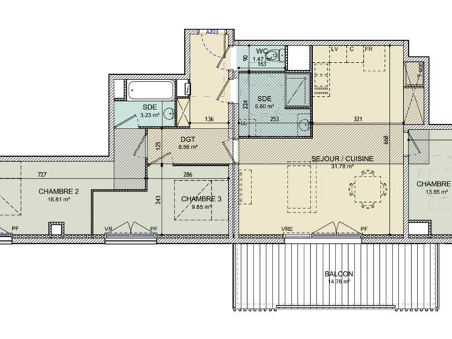 Situé au 2 ème étage, cet appartement T4 de 91 m² environ habitables se prolonge par un balcon de 15 m² environ.