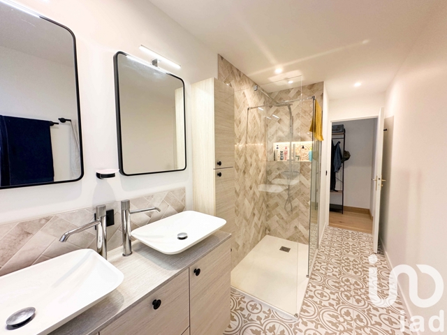 *D’une salle d’eau avec double vasque, placard et fenêtre