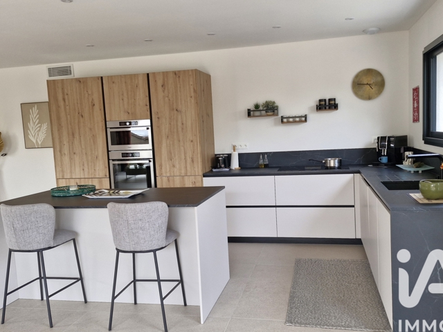 L’entrée s’ouvre sur une vaste pièce de vie lumineuse avec une cuisine ouverte moderne et fonctionnelle.