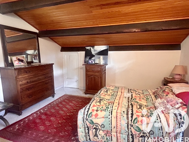 A l’étage, un espace mezzanine qui peut faire office de coin bureau dessert une chambre de 10m² + un accès au grenier de 7 m² qui fait office de lieu de rangement, d’accès direct du salon.