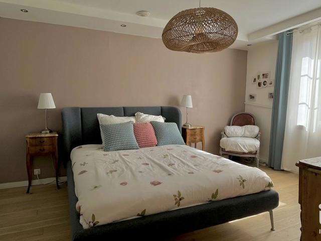 À l’étage, l’espace nuit se compose de trois chambres, d’un dressing, d’un bureau idéal pour le télétravail, ainsi que d’une salle d’eau avec WC.