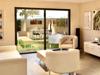 Grande baie vitrée coulissante de 2,80 m ouvrant sur le jardin