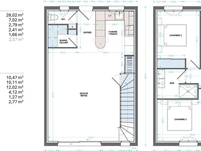 Cette maison mitoyenne en duplex développe une surface de plancher de 85 m² environ, parfaitement pensée pour un confort de vie moderne et fonctionnel, avec un jardin privatif d’environ 60 m² environ et un terrain total de 147 m² environ.