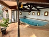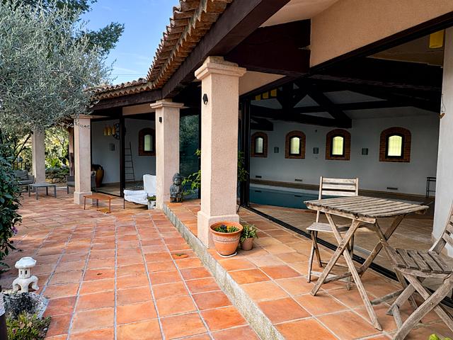 Les larges baies à galandage plein sud prolongent naturellement cet espace vers les terrasses et le jardin, créant une atmosphère unique où intérieur et extérieur se rejoignent. Un véritable lieu de détente permettant de profiter de la baignade et du bien-être en toute saison.