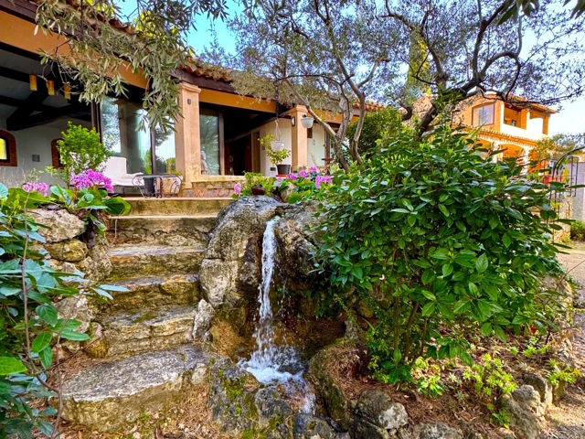 Une source naturelle coule en cascade à travers le jardin, apportant charme et fraîcheur à cet environnement privilégié. Plusieurs espaces de détente ont été aménagés, dont un jacuzzi extérieur.
