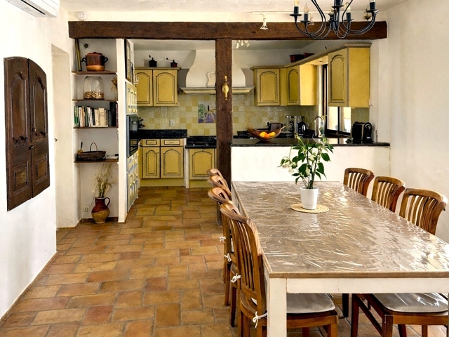 La maison conserve tout le charme de l’architecture provençale avec des matériaux authentiques tels que le carrelage de Salernes, apportant chaleur et caractère aux espaces de vie.