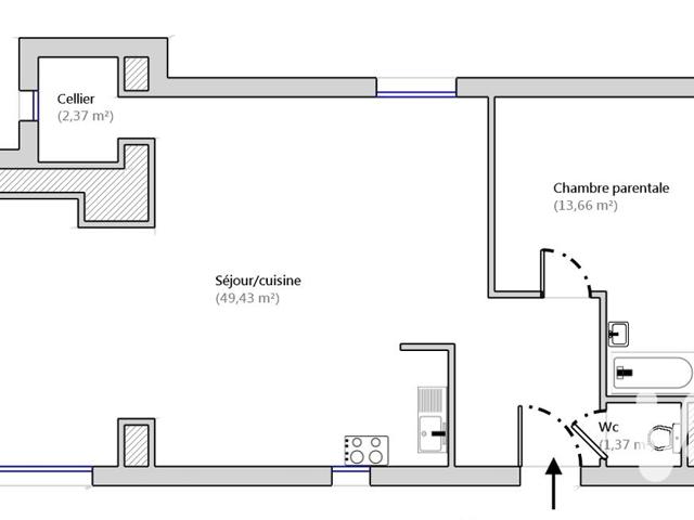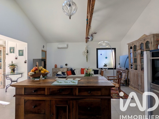 Le bâti principal s’ouvre sur une entrée menant à un vaste séjour lumineux avec belle hauteur sous plafond. La cuisine ouverte, aménagée et équipée, s’intègre harmonieusement à l’espace. L’ensemble comprend une suite parentale avec salle d’eau privative et WC séparé, ainsi qu’un cellier.