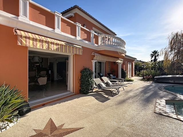 Au cOEur d'un quartier prisé de Fréjus, cette villa contemporaine de standing invite à une expérience résidentielle exclusive. Édifiée en 2005 sur un vaste terrain paysager, cette demeure en parfait état incarne le raffinement méditerranéen.