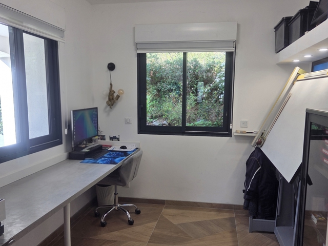 La maison dispose de 2 belles chambres, d'un bureau pouvant être transformé en chambre supplémentaire, de 1 salles d'eau et 1 salle de bain pour un confort optimal. Un dressing bien pensé ajoute une touche de sophistication.