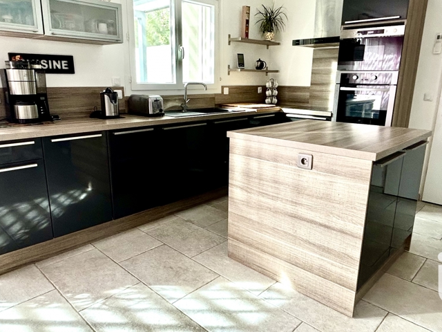 Construite en 2015, cette maison bénéficie d'un agencement optimal avec une cuisine équipée et aménagée, un salon lumineux, et des espaces pour le rangement. Les finitions de qualité ajoutent une touche d'élégance à chaque pièce.