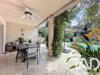 Cet espace s’ouvre directement sur une agréable terrasse couverte donnant sur la piscine.