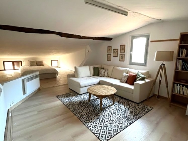 Au dernier étage, un grenier aménagé avec entrée indépendante constitue un espace idéal pour recevoir, télétravailler en toute tranquillité ou développer une activité locative.