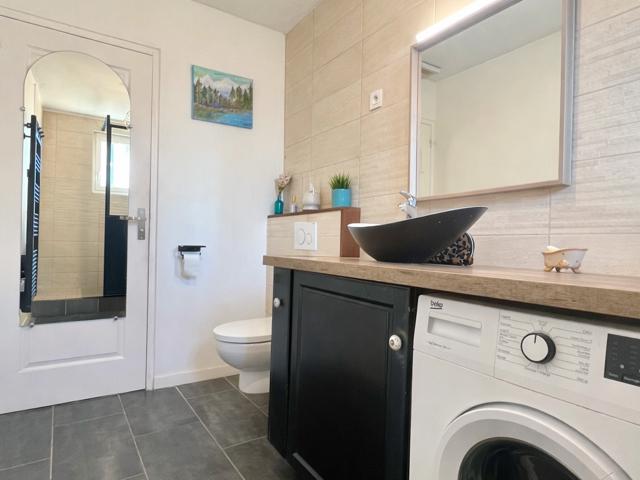 À l’étage, vous trouverez un dégagement, deux belles chambres d'environ 12m2, une salle d’eau très bien agencée avec un wc.