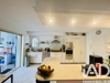 L’espace salon, chaleureux et convivial, se prolonge par une salle à manger attenante à une cuisine entièrement aménagée et équipée.