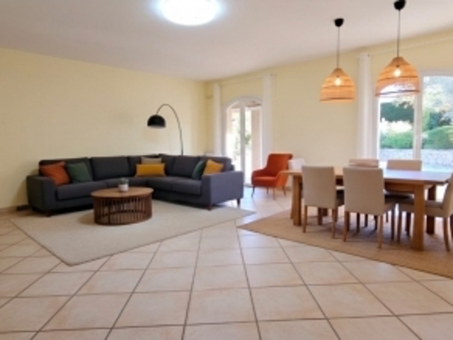 - Un vaste séjour lumineux ouvrant sur la terrasse couverte et le jardin, idéal pour profiter des belles journées ensoleillées.