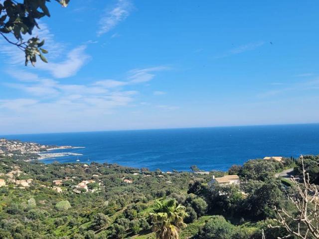 À l’étage, une somptueuse suite parentale avec salle de bains privative et toilettes vous accueille dans un espace intimiste. Elle s’ouvre sur une magnifique terrasse tropézienne offrant une vue mer panoramique à couper le souffle — un véritable tableau vivant.
