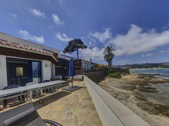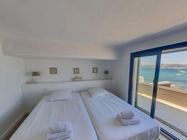 Ici, la mer n’est pas une vue — c’est un mode de vie. Les baies vitrées du séjour s’effacent sur la terrasse de bord de mer, le salon se prolonge sur l’eau, et chaque chambre de l’étage s’endort au bruit des vagues. La plage privée est à quelques pas, le golfe de Saint-Tropez en toile de fond. Une adresse rare, aussi bien en résidence principale de prestige qu’en investissement locatif haut de gamme.