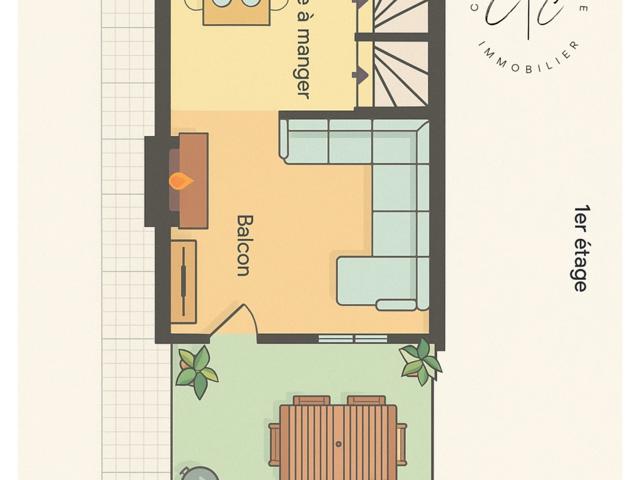 Premier étage : une belle pièce de vie d’environ 31 m² avec accès à une terrasse d’environ 20 m².