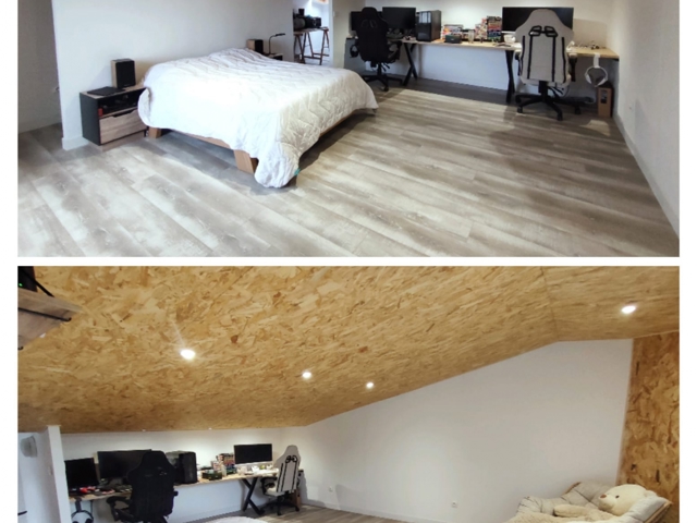 En R+2, une grande chambre mansardée de 20m2 pourra vous offrir un espace de télétravail ou un espace de repos en toute intimité.