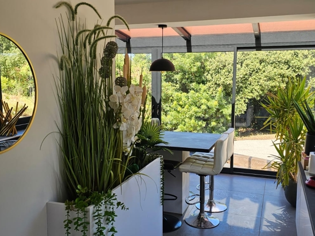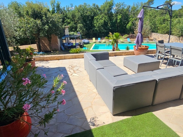Vous découvrirez un espace de vie spacieux et lumineux ou une pergola bio thermique y a été ajouté.