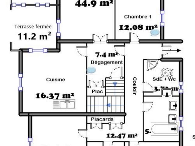 La configuration de la maison permet de nombreuses possibilités : résidence principale ou secondaire, projet locatif ou création de plusieurs logements, en trois appartements de 3 pièces.