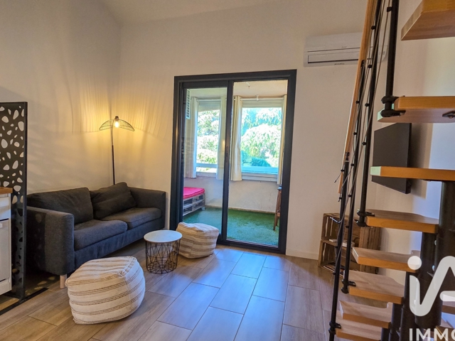 iad France - Géraldine Lagache vous propose: SANARY. EXCLUSIVITE. Au sein d'une petite résidence sécurisée Le verger des Prats, charmant studio duplex meublé entièrement rénové (2024) d'environ 35m² (27,96m² loi Carrez) avec une loggia de 6m². A quelques minutes à pieds du centre et des plages, il se situe au 3ème et dernier étage d'un petit bâtiment. Sans vis à vis et avec une vue dégagée, il se compose d'une entrée avec lit superposé, salle d'eau, WC indépendant, pièce de vie avec coin cuisine aménagé. Sa mezzanine propose une chambre confortable. Ce bien dispose d'une adorable loggia pour les instants détente. Entièrement climatisé, ce petit cocon bénéficie d'une place de stationnement privative. Idéal pour un pied à terre, un premier achat ou un investissement locatif, coup de cOEur assuré!