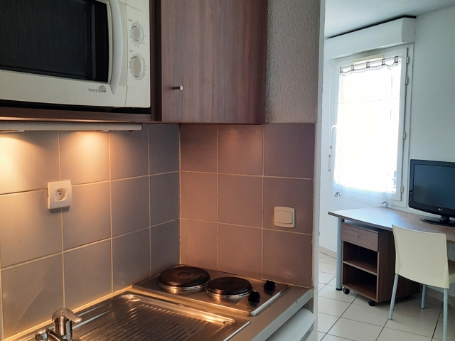 L'espace de vie principal est lumineux et situé au calme. La kitchenette est à la fois fonctionnelle et moderne. Studio entièrement meublé et équipé : machine à laver, réfrigérateur, plaques chauffantes, micro-ondes, évier, canapé clic-clac, étagères, meubles de rangements, table, chaises, bureau et placard intégré dans l’entrée. Avec son exposition Nord, vous bénéficierez d'une luminosité naturelle tout au long de la journée.