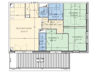 Situé au 1 er étage, cet appartement T4 de 76 m² environ habitables se prolonge par un balcon de 20 m² environ.