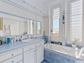 À l’étage d’une villa composée uniquement de deux logements, cet appartement séduit par ses beaux volumes (plus de 3 m de hauteur sous plafond) et son esprit provençal chic, soigneusement préservé.