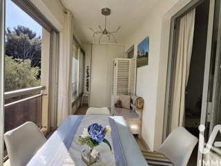 Cet appartement de type 2 propose une chambre, une salle de bain, un WC séparé, une cuisine équipée, un séjour de 15m² ouvrant sur une loggia aménagée en salle à manger.