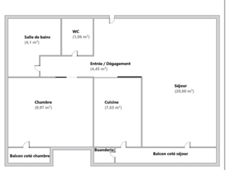L'appartement propose une distribution fonctionnelle et confortable :