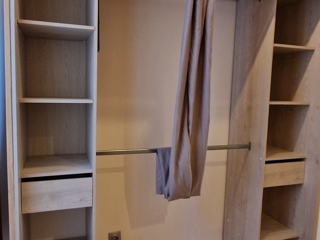 L’appartement bénéficie d’une configuration traversante, permettant une circulation naturelle de l’air et une luminosité agréable tout au long de la journée. Côté nuit, la chambre propose un cadre apaisant avec son ambiance douce et son aménagement soigné.