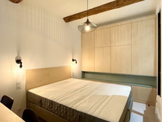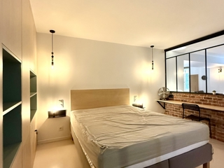 Ce bien au style loft, en excellent état, se compose d'une spacieuse pièce de vie avec salon et cuisine ouverte entièrement équipée, de deux chambres confortables disposant chacune d'un grand dressing et de superbes verrières, et d'une salle d'eau avec WC.