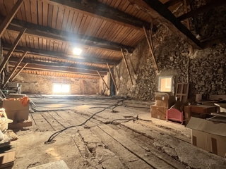 À l’étage, la maison se compose d’un séjour lumineux, d’une cuisine séparée dont la cloison peut être supprimée afin de créer une cuisine ouverte avec accès au balcon, de deux chambres, d’une salle d’eau, de WC séparés et d’un grand cellier avec accès direct au grenier aménageable.