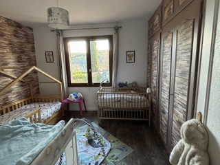 L'étage quant à lui abrite deux chambres supplémentaires, offrant ainsi des espaces de vie distincts pour plus d'intimité ainsi qu'une salle d'eau et un wc séparé.