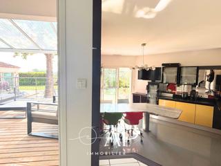 Terrasses, aire de jeux pour enfants, atelier de jardin, carport 3 places et garage fermé complètent l’ensemble.