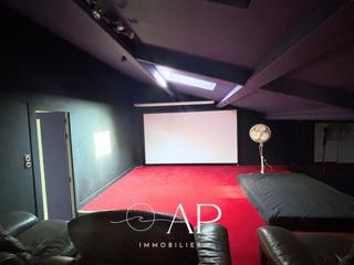 À l’étage, une mezzanine dessert une salle de cinéma de 35 m² environ, idéale pour vos moments de convivialité.